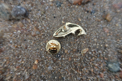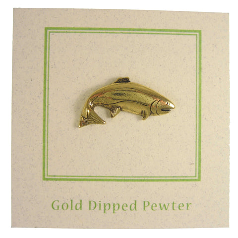 Celebrate that great catch with our hand cast pewter pins. Fishing enthusiasts can appreciate the unique designs, the careful craftsmanship, and the amazing attention to detail that characterizes Jim's work. Each of our trout pins is handcrafted in our studio in Coventry, Rhode Island. Whether fishing in a lake, pond, or stream, stocked, or in the wild, our fish pins have great detail and will look sharp on a suit jacket, hat, or backpack. Individually packaged on our signature presentation cards, our pins arrive ready for gift- giving! We are happy to include a gift message to your favorite fisherman.