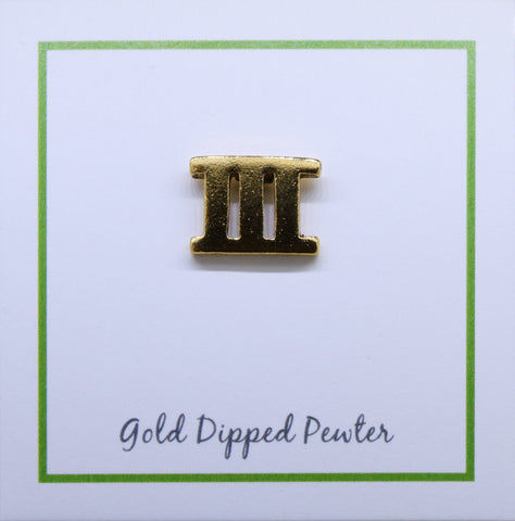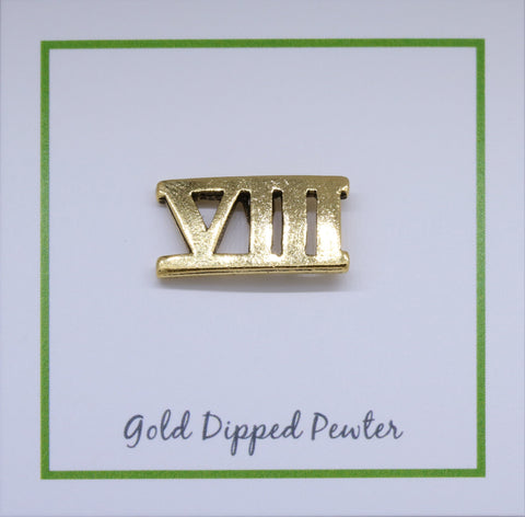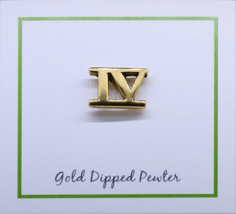 Roman numerals originated in Ancient Rome, with them still be using after the fall of the Roman Empire. Show your interest in history and numbers with our Roman Numeral lapel pins. Our roman numeral pins are hand cast in solid, lead-free pewter and then dipped in 22K gold. All number pins have a US made, military style clasp back to keep your pin secure on a coat, tie, or hat. Our numeral pins arrive packaged on our signature presentation card, making them ready for gift-giving!