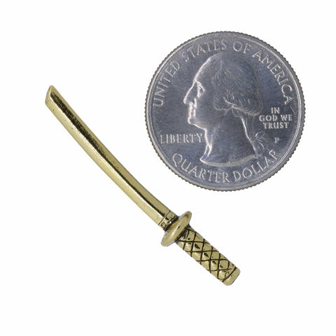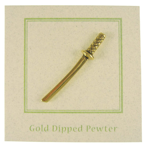 John S This katana was a gift to a martial arts instructor who was recently honored professionally for superlative skill in Japanese sword technique. The lapel pin is impressive. It is a well-dimensioned, substantial piece of metalworking artistry befitting the serious occasion for which it was presented---not a silly two-dimensional, flimsy, party trinket. It is hefty pewter finished with the distinct hue of 22K gold. The honoree was noticeably moved when he received it. I am grateful to this studio for its quality and integrity.