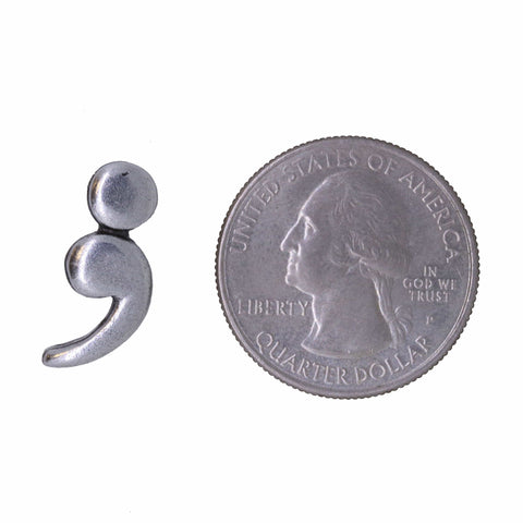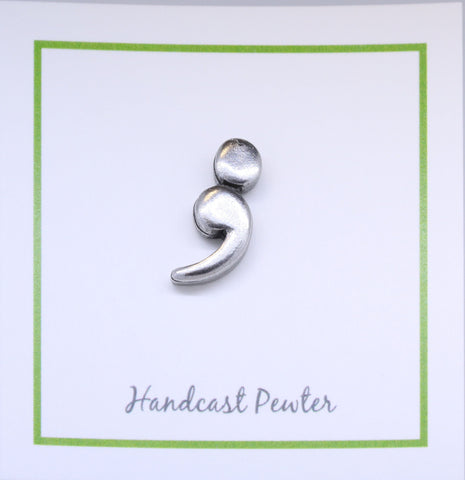 The semi colon has become a symbol of mental health awareness and suicide prevention. Wear our hand cast pewter lapel pin to show your support and help spread awareness of mental health. "A semicolon is used when an author could've chosen to end their sentence, but chose not to. The author is you, and the sentence is your life."- Project Semicolon. All of our awareness pins have a US made military style clasp to keep your pin secure and arrive packaged on our signature presentation card, making them ready for gift-giving.
