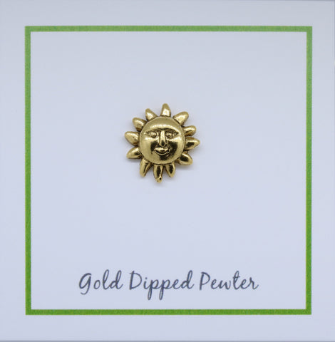 Small Sunface Gold Lapel Pin- Sun, Summer Solstice, and Sunlight Pins