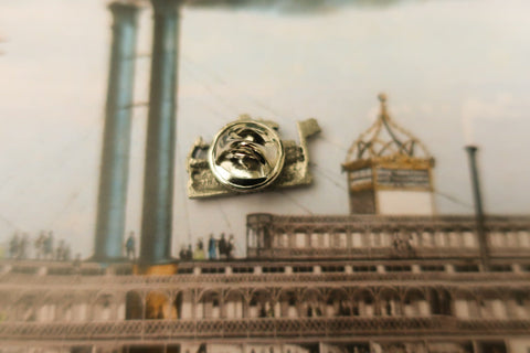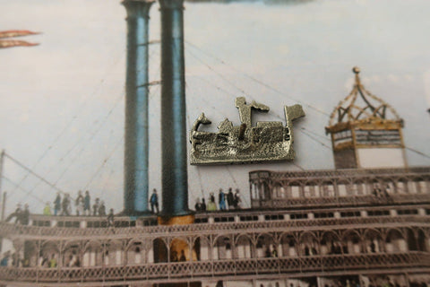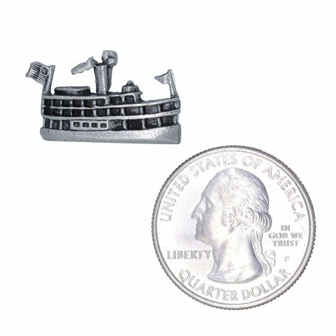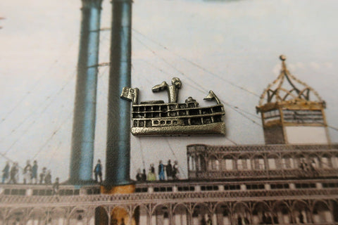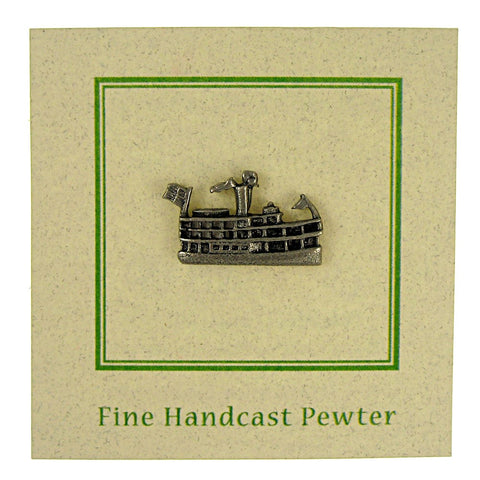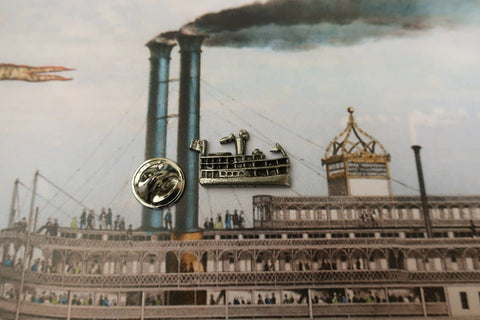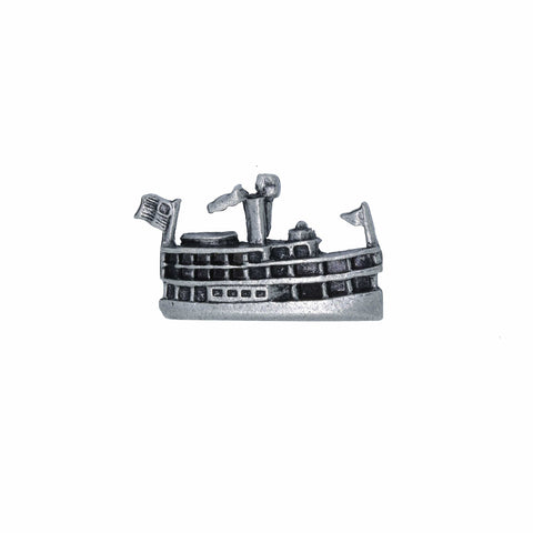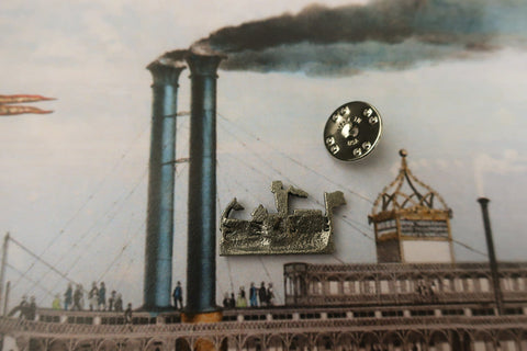 Steamboats proved a popular method of commercial and passenger transportation along the Mississippi River and other inland U.S. rivers in the 19th century. Their relative speed and ability to travel against the current reduced the time and expense of shipping. Wear a piece of history with our steamboat lapel pin. Hand cast in solid, lead-free pewter, our transportation pins have a US made, military style clasp back to keep your pin secure on a coat, hat, or bag. All boat pins arrive packaged on our signature presentation cards, making them ready for gift-giving!