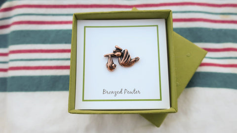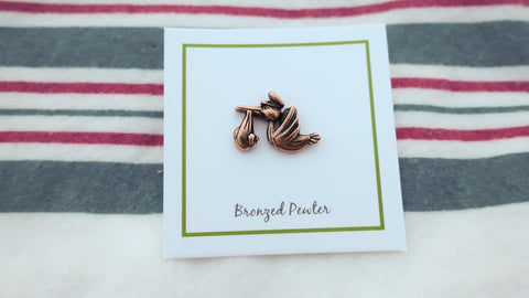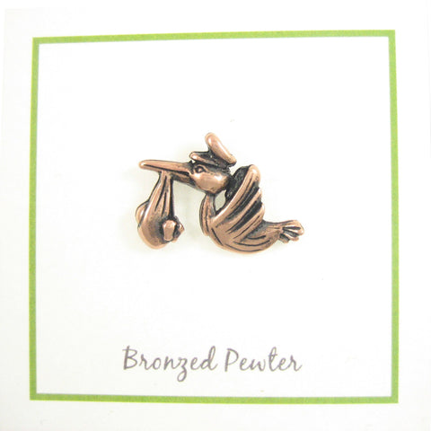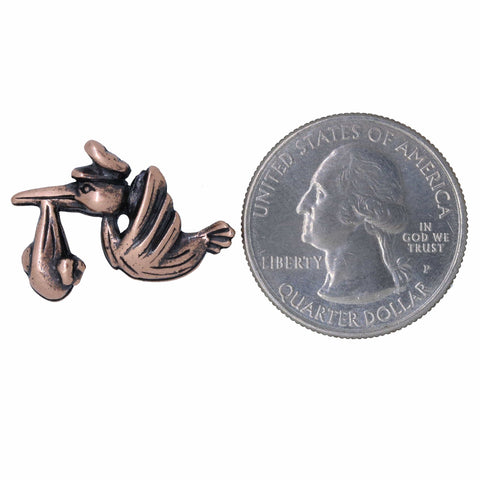 Celebrate the arrival of a newborn baby, an expecting mother, and labor and delivery nurses with our unique, detailed stork badge. Hand cast in solid, lead-free Fine Pewter and then dipped in copper, each piece is an original three-dimensional sculpture signed by the artist, Jim Clift. Our stork pins come individually packaged on our signature presentation cards, making them a great favor for baby showers, or a great gift to present labor and delivery healthcare specialists. Hosting an event? Design your own custom card for your pins to arrive on. Include your logo, a quote, or special message.