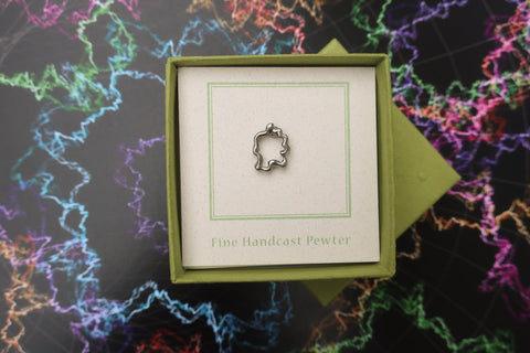 Show your love for quantum physics with our string theory pin.  Hand cast in solid, lead-free pewter, our physics pins have a US made, military style clasp back to keep your pin secure on a coat, hat, or bag.  All of our science pins arrive packaged on our signature presentation cards, making them ready for gift-giving!