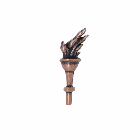 The torch is a common emblem of both enlightenment and hope, held upward it symbolizes life, truth and the regenerative power of flame. Our torch pin is hand cast in solid, lead-free pewter and then dipped in copper. All fire pins have a US made, military style clasp backing that keeps your pin secure on a coat, hat, bag, or lanyard. The torches arrive packaged on our signature presentation card, making them ready for gift-giving!