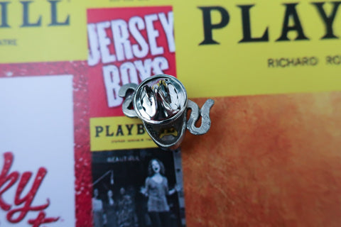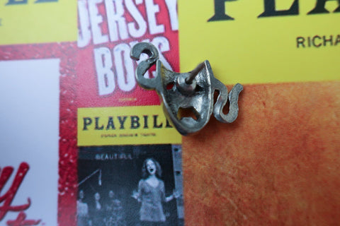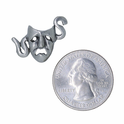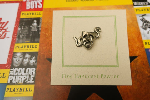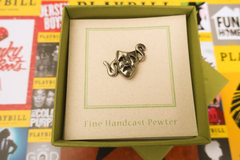 Show your passion for theatre with our tragedy pin. Hand cast in solid, lead-free pewter, all theatrical pins have a US made, military style clasp backing that keeps your pin secure on a coat, hat, bag, or lanyard. Award to cast members, theatre clubs, or your most dramatic friend. All theatre pins arrive packaged on our signature presentation card, making them ready for gift-giving! Upgrade to a custom card to include a logo, information about your event, or a special message on the front of the card.