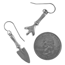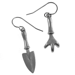 Our trowel and claw earrings are hand cast in solid, lead-free pewter. They have stainless steel ear wires that are very corrosion resistant, clean, hypoallergenic and sturdy (also with a sleek, shimmering finish that won’t rust or tarnish). The gardening dangles arrive packaged on our signature presentation card, nestled inside a beautiful gift box, making them ready for gift-giving!