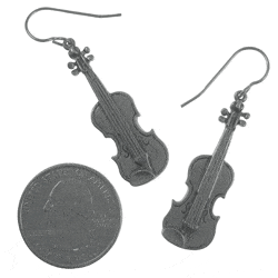 Our violin earrings are hand cast in solid, lead-free pewter. They have stainless steel ear wires that are very corrosion resistant, clean, hypoallergenic and sturdy (also with a sleek, shimmering finish that won’t rust or tarnish). The instrument dangles arrive packaged on our signature presentation card, nestled inside a beautiful gift box, making them ready for gift-giving!