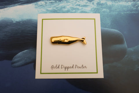 Whales are unique, beautiful, graceful and mysterious; they nurture, form friendships, innovate, grieve, play, sing and cooperate with one another. Celebrate these magnificent creatures with our whale lapel pin. Hand cast in solid, lead-free pewter and then dipped in gold, our whale pins have a US made, military style clasp back to keep your pin secure on a coat, hat, or bag. Our marine pins arrive packaged on our signature presentation cards, making them ready for gift-giving! Hosting an aquarium fundraiser, ocean preservation, or whale sightseeing tour? Our custom card option allows you to design the front of the card to include a logo, information about your event, or a special message.