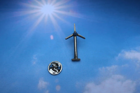 Harvesting wind power is a clean, non-polluting way to generate electricity. Celebrate renewable energy with our wind turbine pin. Hand cast in solid, lead-free pewter, our clean energy pins have a US made, military style clasp back to keep your pin secure on a coat, hat, or bag. We are committed to being green, since June of 2004, 100% of the electricity we have used in the production, packaging, and marketing of our products has been produced by renewable resources located within New England. Your purchase helps to develop a combination of solar, wind, and small hydroelectric generation sources that offer a cleaner future and a sustainable industry. Thank you! All of our wind energy pins arrive packaged on our signature presentation cards, making them ready for gift-giving!
