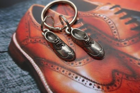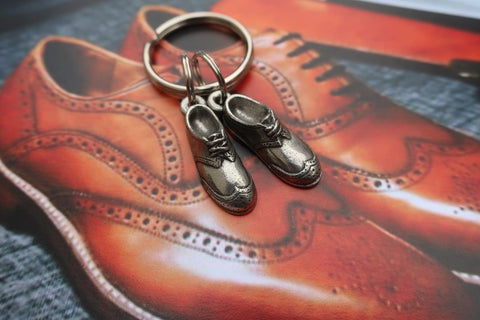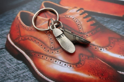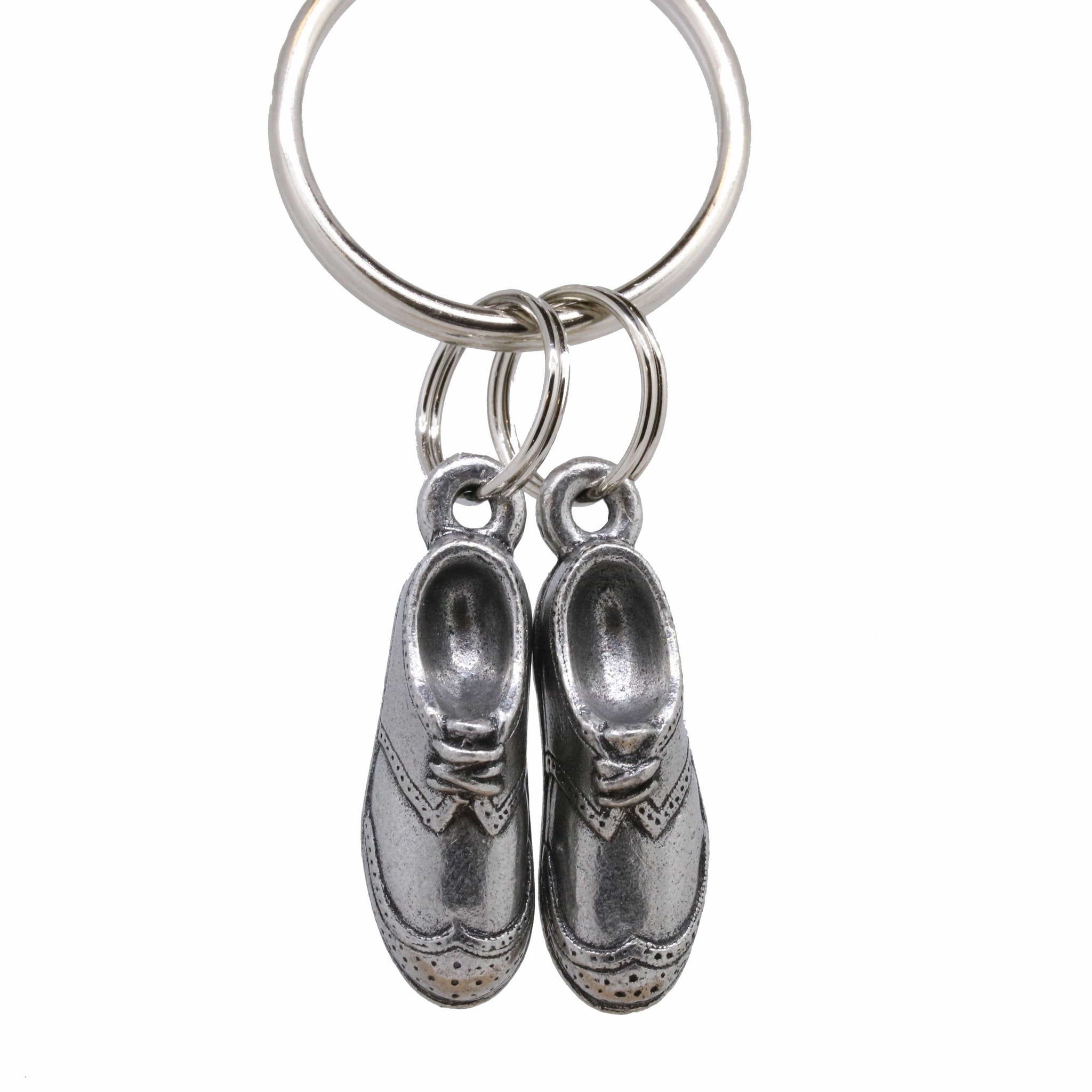 Add some flair or personalization to your set of keys with our hand cast pewter wingtips key chain. Our dress shoes keyring comes with 2 shoes dangling on rings. The perfect gift or accessory for the dapper gentleman to tell their story.
