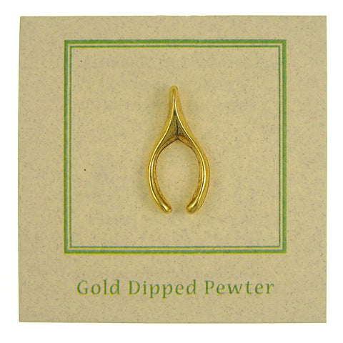 The wishbone is thought to signify hope for the future and to grant good luck to the wearer. Up your odds for good fortune with our wishbone pin. Hand cast in solid, lead-free pewter and dipped in 22K gold, our lucky charm pins have a US made, military style clasp back to keep your pin secure so that your luck doesn’t run out. All wish pins arrive packaged on our signature presentation cards, making them ready for gift-giving! Hosting an event, fundraiser, or celebration? Our custom card option allows you to design the front of the card to include a logo, information about your event, or a special message.